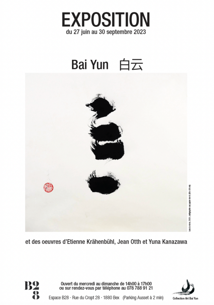 Bai Yun 白云 invite ses amis artistes, Yuna Kanazawa, Etienne Krähenbühl et rend un hommage à Jean Otth à l'Espace B-28 à Bex.